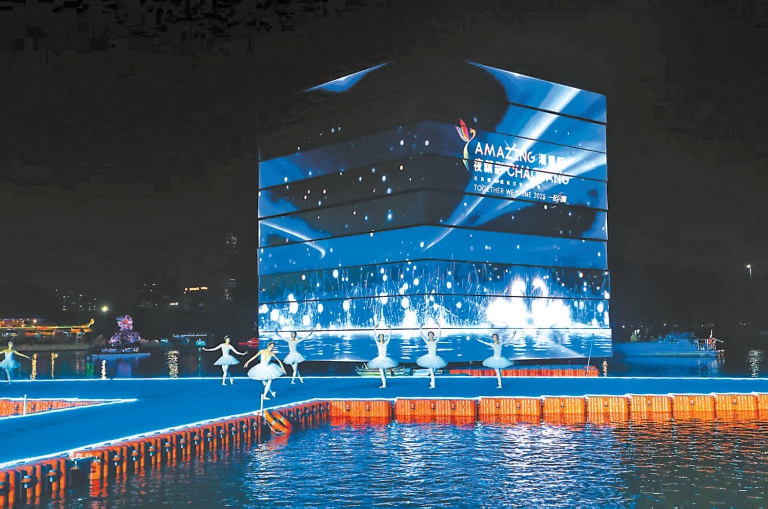 水上光影漂浮舞台“魔方” 迎接最美赏秋季