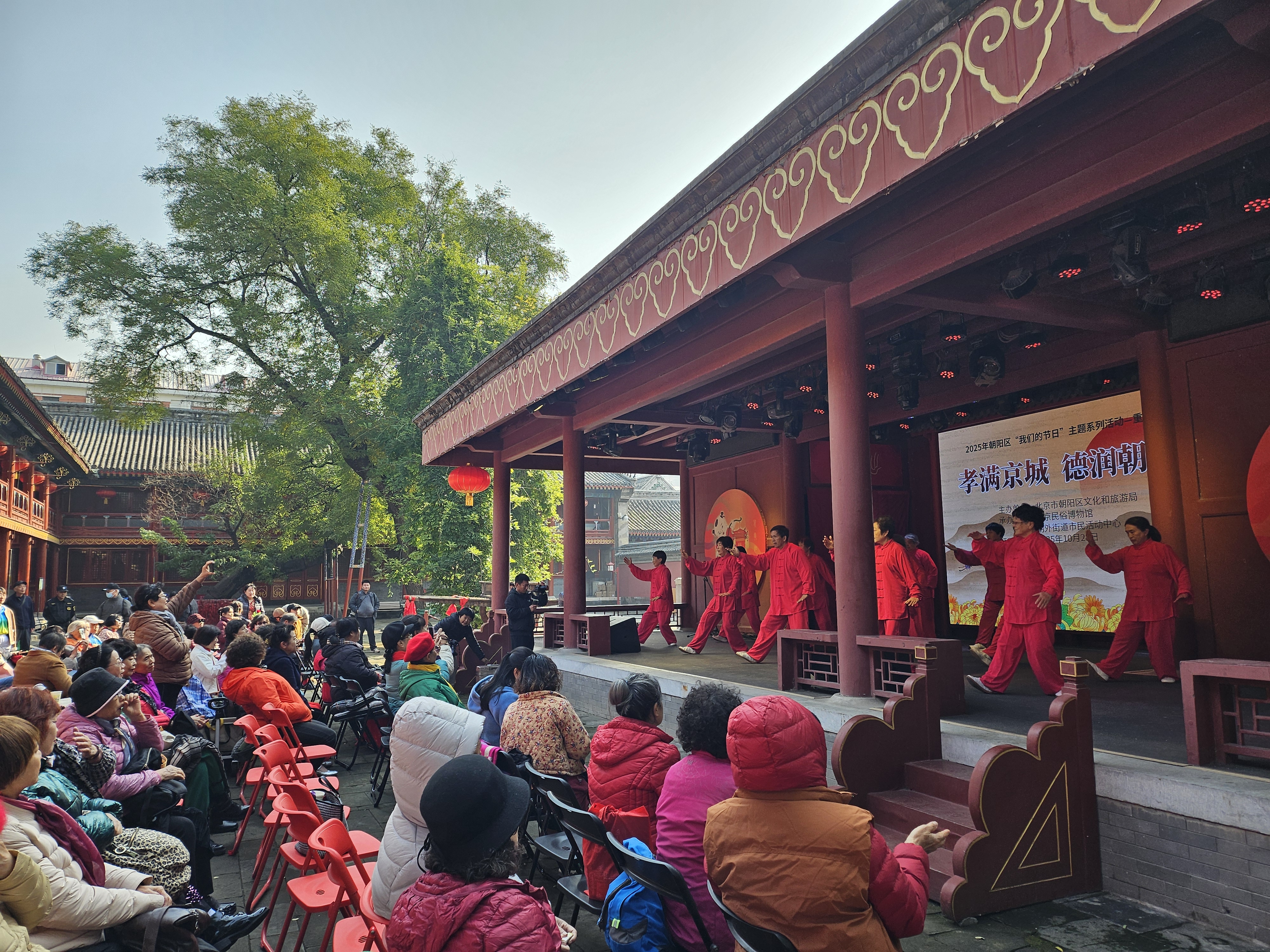 10月28日,北京民俗博物馆所在地东岳庙瞻岱门前,搭起菊花塔,“我们的节日”——重阳节主题文化活动在此温情启幕。